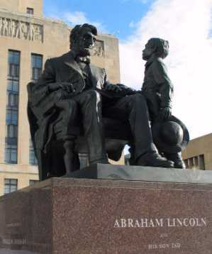 substantial sculpture of President Lincoln and his son Tad,